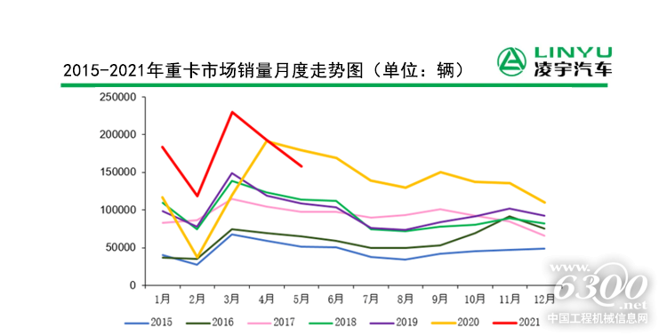 5月份,由于重卡庫存高、需求和訂單持續(xù)下降等不利因素的影響,我國重卡市場銷量出現(xiàn)了今年以來的首次下滑。種種跡象表明,重卡市場已經(jīng)走到了由上漲走向下降的拐點。
