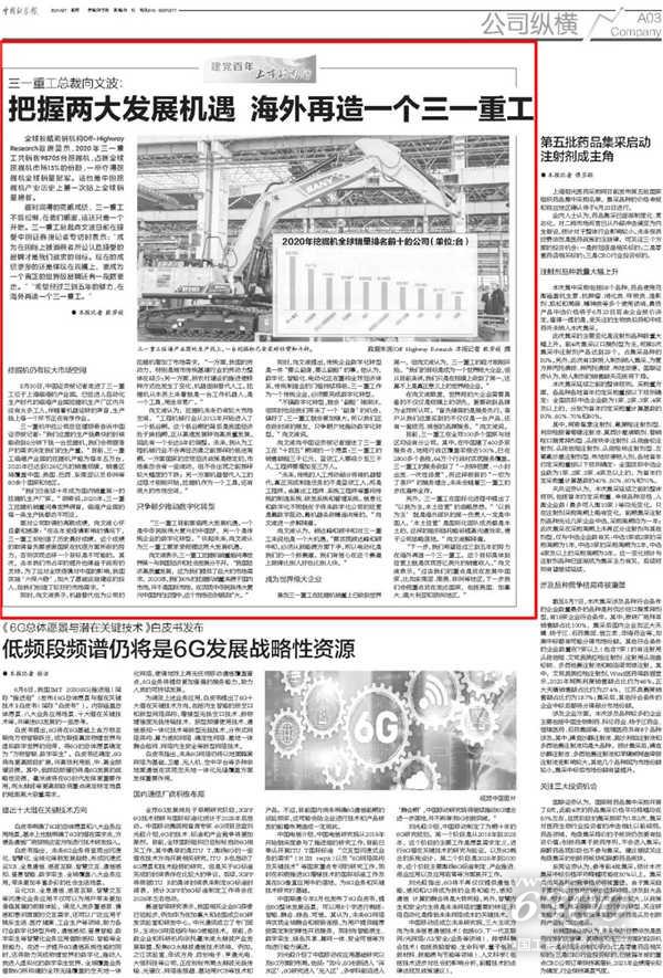 6月7日,《中國證券報(bào)》半版刊發(fā)三一重工總裁向文波接受專訪文章。文章指出,面對(duì)三一挖掘機(jī)銷量首奪世界第一的亮眼成績(jī),三一重工不曾松懈,在他們眼里,這還只是一個(gè)開始。
