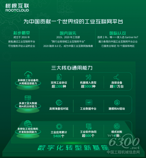 除了發(fā)布對宏觀經(jīng)濟分析提供參考的“工程機械指數(shù)”,此次展會上,樹根互聯(lián)還重點展示了根云平臺的三大通用核心能力,具體情況為: