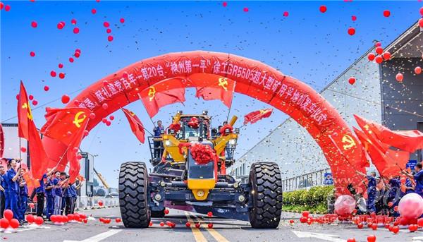 JIAN DANG 100 ZHOU NIAN“對黨忠誠,為國爭光;大國重器,獻(xiàn)禮建黨百年!” 徐工黨員團(tuán)隊(duì)分列兩排,對黨忠誠的徐工人用勤奮與自強(qiáng)鋪?zhàn)龌趾氘嫴?,目視國?nèi)第20臺(tái)GR5505緩緩駛出,每一位臉上都書寫著為黨獻(xiàn)禮的由衷自豪!