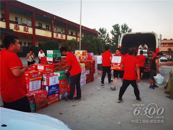 ▲三一重工河南分公司搶險隊發(fā)放物資