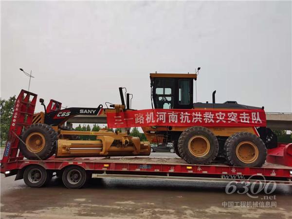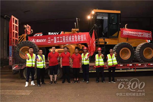 ▲三一重工河南分公司搶險隊出發(fā)去受災(zāi)地區(qū)