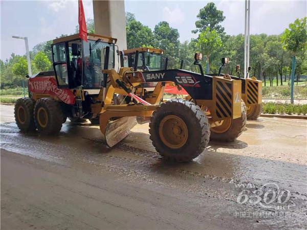 7月24日早上8點,另外一臺三一STG190C-8S平地機到達鄭州城區(qū),也加入道路清淤工作。