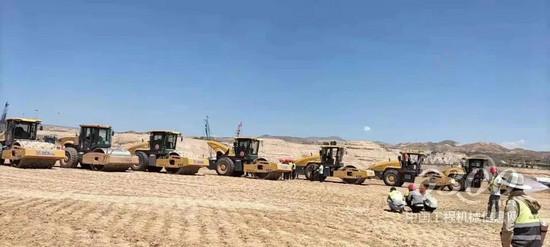 機器轟鳴,馬力全開。在西寧曹家堡機場三期擴建的跑道、航站樓標段, 9臺徐工壓路機、1臺徐工平地機、2臺徐工冷再生機參與施工建設(shè),形成一幅幅美麗的畫卷。其中,8臺加裝PD輪的徐工新一代XS265JS壓路機機群施工尤其亮眼。不同于普通的路基施工,機場建設(shè)工程,土方填方量高,從地面標高填方38米,來料后使用推土機、平地機刮平,冷再生機拌和后,再使用壓路機進行壓實。實際施工中,虛鋪50cm,壓實后厚度30cm,每碾壓厚度到4米,進行一次強夯。這就對壓路機的施工重量、振頻、振幅和激振力提出了更高的要求。