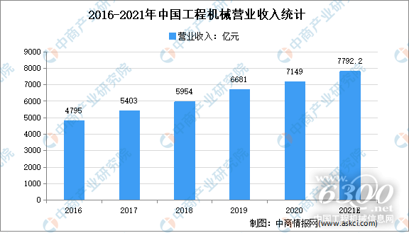 工程機(jī)械行業(yè)經(jīng)歷2011年至2015年的市場(chǎng)深度調(diào)整后,自2016年以來(lái),受益于國(guó)家加大基礎(chǔ)設(shè)施建設(shè)投資力度,工程機(jī)械行業(yè)連續(xù)四年呈現(xiàn)增長(zhǎng)態(tài)勢(shì),2017年全行業(yè)營(yíng)業(yè)收入重新跨上了5000億元平臺(tái),2019年更是達(dá)到6681億元,同比增長(zhǎng)12%,創(chuàng)歷史新高。中商產(chǎn)業(yè)研究院預(yù)測(cè),2021年中國(guó)工程機(jī)械營(yíng)業(yè)收入將達(dá)7792.2億元。