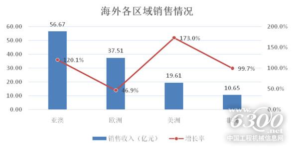 分區(qū)域看,公司在全球主要市場(chǎng)及三一美國(guó)、三一印度、三一歐洲等海外事業(yè)部銷售實(shí)現(xiàn)高速增長(zhǎng),亞澳區(qū)域56.67億元,增長(zhǎng)120.05%;歐洲區(qū)域37.51億元,增長(zhǎng)46.85%;美洲區(qū)域19.61億元,增長(zhǎng)173%;非洲區(qū)域10.65億元,增長(zhǎng)99.72%。