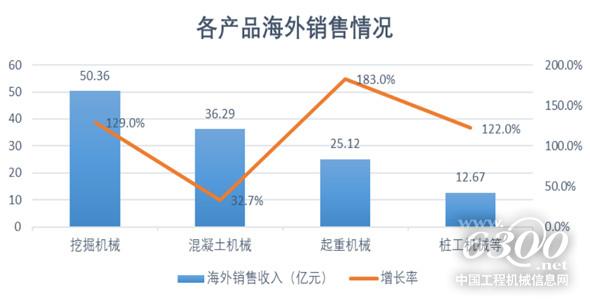 分產(chǎn)品看,公司主要產(chǎn)品海外銷售均實(shí)現(xiàn)高速增長(zhǎng),挖掘機(jī)銷售50.36億元,同比增長(zhǎng)129.04%,混凝土機(jī)械銷售36.29億元,同比增長(zhǎng)32.71%,起重機(jī)械銷售25.12億元,同比增長(zhǎng)182.97%,樁工機(jī)械等其他產(chǎn)品銷售12.67億元,同比增長(zhǎng)121.98%。