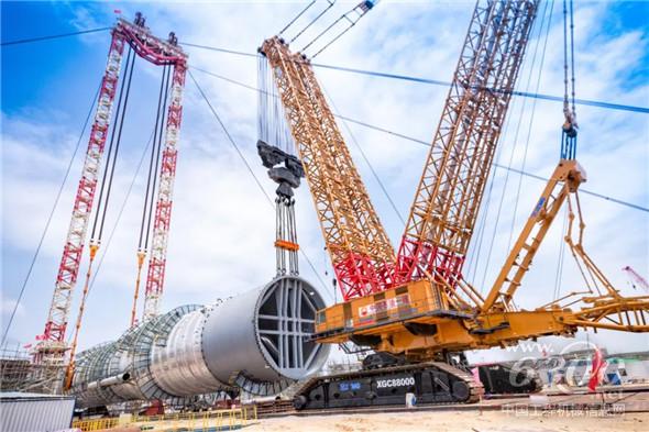 4月,徐工XGC88000“世界第一吊”圓滿完成亞洲最大石化塔器