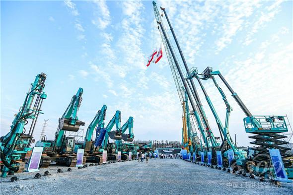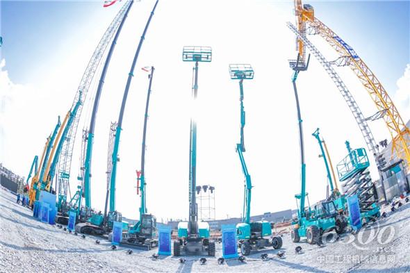 △依次錯(cuò)落擺放的起重與高空機(jī)械成套裝備。