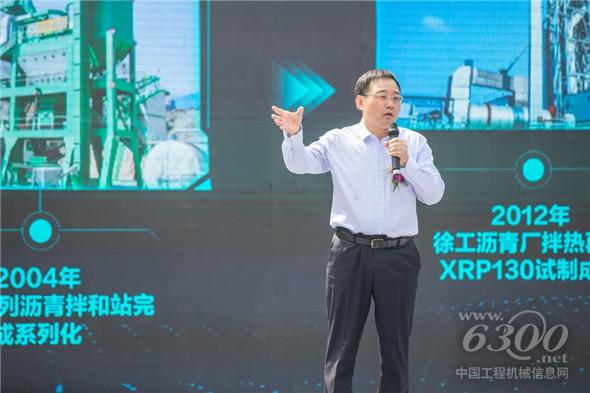 活動現(xiàn)場,徐工道路機(jī)械副總經(jīng)理、養(yǎng)護(hù)公司總經(jīng)理宋宗華榮耀發(fā)布5500全球最大智能型瀝青站