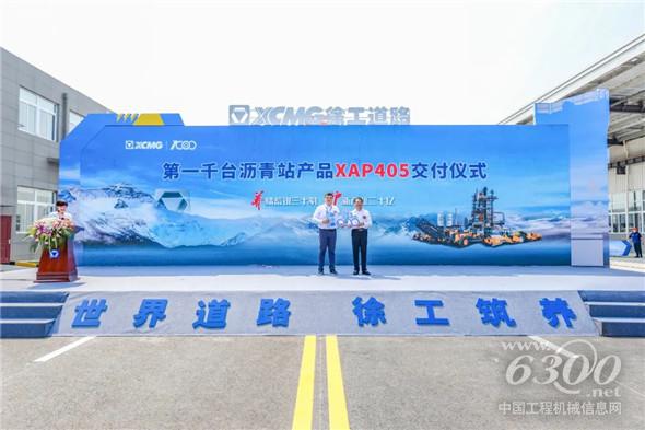 徐工道路機(jī)械事業(yè)部副總經(jīng)理王鋒將象征著徐工第一千臺瀝青站的車模交給客戶