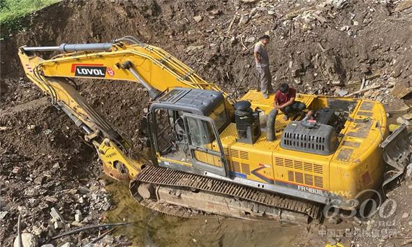 然而一到現(xiàn)場,大家才發(fā)現(xiàn)情況比預想的更糟糕。車輛已被河水已淹沒,水位較深現(xiàn)場無法立即實施救援。多日后水位下降,代理商服務人員趙軍龍和趙營杰再次來到現(xiàn)場,兩人人二話不說,跳進滿是泥濘的河道檢查和維修車輛,兩人檢查全車部件,排查線路,清洗處理了3個被泥巴嚴重堵塞的散熱器,把所有進水插排和線束修復、更換處理。又艱難地將發(fā)動機拆下拖回修理廠維修,修復后再回現(xiàn)場吊車安裝。經(jīng)過多次維修檢查,車輛恢復啟動。隨后司機操作著這臺飽經(jīng)暴雨歷練的雷沃480終于回到岸上。