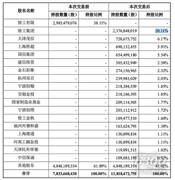 這次吸收合并,徐工有限的股東成為徐工機(jī)械的直接股東。