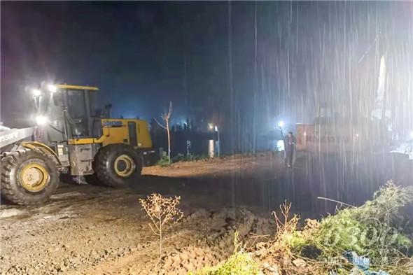 夜間,奔涌的洪水借著雨勢,潰堤后迅速蔓延,決口一再擴大到20米寬。面對這一突發(fā)情況,任總指揮著十二臺徐工裝載機涉水轉(zhuǎn)運沙袋、石塊盡全力進行封堵。
