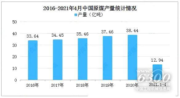 我國原煤產(chǎn)量從低谷逐漸回升2014年至2019年,我國原煤產(chǎn)量呈現(xiàn)波動趨勢。2016年,由于能源領(lǐng)域供 給側(cè)結(jié)構(gòu)性改革成效明顯,煤炭產(chǎn)量下降至34.11億噸。自2017年起,我國煤 炭產(chǎn)量穩(wěn)步回升,2020年中國原煤產(chǎn)量38.44億噸,同比增長0.9%。2021年1-4月,中國原煤產(chǎn)量12.94億噸,同比增長11.1%。