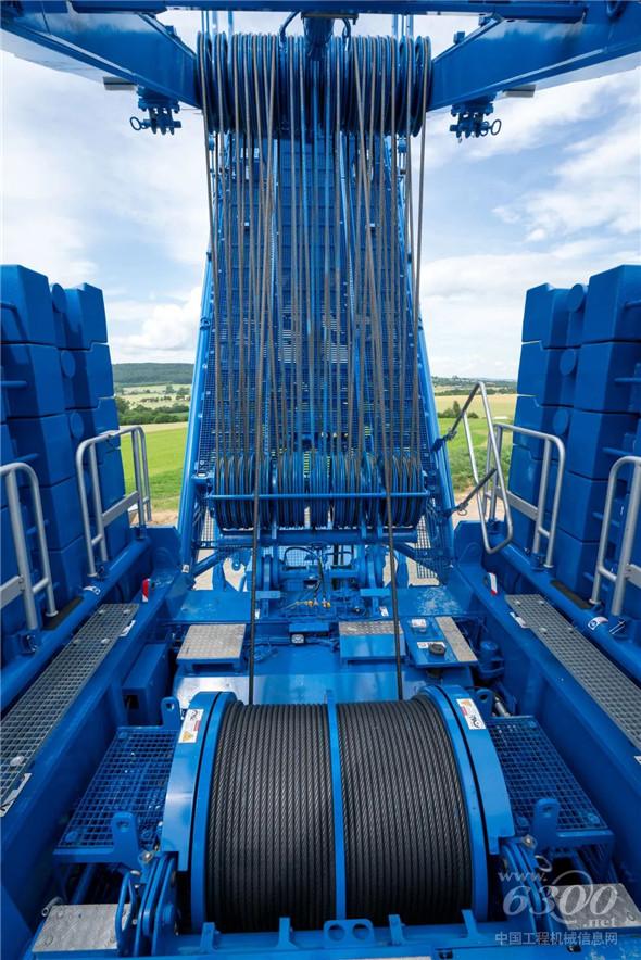 “可變超起配重和V-型架允許我們?cè)谡麄€(gè)風(fēng)機(jī)安裝過(guò)程中帶60噸的超起配重工作。所以我們不需要花費(fèi)時(shí)間去處理配重的事情?!贝罅康呐渲刂辉诎馄鸹蚍诺硅旒鼙蹠r(shí)才用到。順便說(shuō)下,可以扳起的桁架臂達(dá)到198米這一驚人的長(zhǎng)度。只需要4個(gè)銷子,整個(gè)過(guò)程大約10分鐘-總重375噸的配重就已經(jīng)懸掛在超起臂上了。