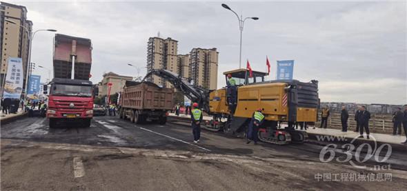 該路段位于南充市高坪區(qū)螺溪街道,是該市道路改造工程的重點(diǎn)項(xiàng)目之一。實(shí)施方案采用“路面勘測(cè)→銑刨機(jī)銑刨→廢料運(yùn)輸→綜合養(yǎng)護(hù)機(jī)切割打邊→人工清掃余渣→銑刨面復(fù)測(cè)→灑布車(chē)噴灑乳化瀝青→攤鋪機(jī)攤鋪?zhàn)鳂I(yè)→光輪、膠輪碾壓作業(yè)→冷卻→開(kāi)放交通”的工法工藝。以難度系數(shù)較大的橋梁施工為現(xiàn)場(chǎng)演示,可見(jiàn)徐工在道路在該領(lǐng)域更勝一籌的絕對(duì)優(yōu)勢(shì)。