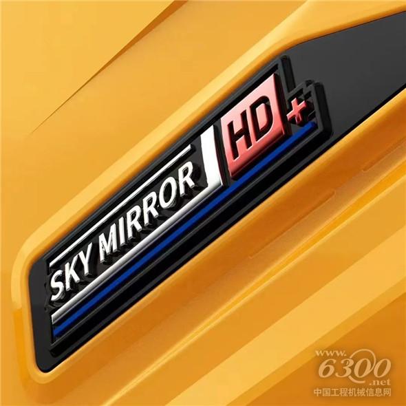 天空之鏡品牌logo(SKY MIRROR)——旗幟的造型代表前進的動勢趨勢,徐工藍代表地平線,也代表施工質量如鏡面的標準,HD 是High Definition 的縮寫,代表極致平整光潔,+代表超強性能,HD+的紅色,是對極致品質的堅持。