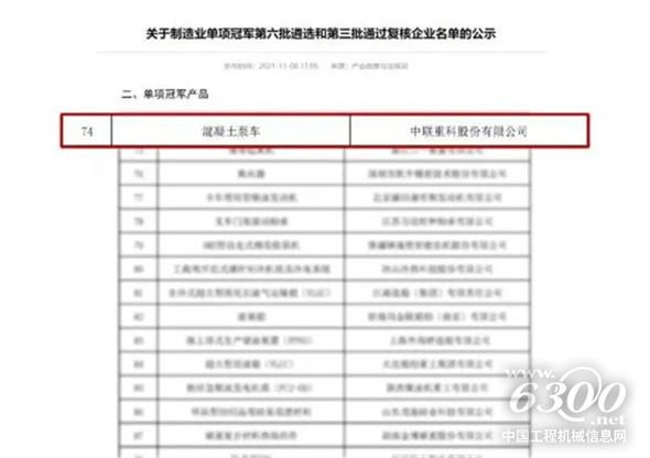 11月8日,工信部公示了擬認定的第六批制造業(yè)單項冠軍和擬通過復(fù)核的第三批制造業(yè)單項冠軍名單,中聯(lián)重科混凝土泵車入選第六批國家級制造業(yè)單項冠軍產(chǎn)品。這是繼塔機、履帶起重機產(chǎn)品之后,中聯(lián)重科又一高端產(chǎn)品類別獲此殊榮,再度展現(xiàn)了中聯(lián)重科在混凝土機械制造領(lǐng)域的領(lǐng)軍實力。