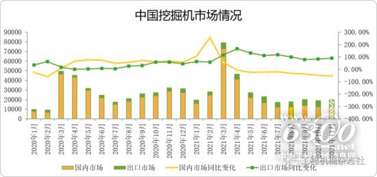 經(jīng)草根調(diào)查和市場(chǎng)研究,CME預(yù)估2021年11月挖掘機(jī)(含出口)銷(xiāo)量20000臺(tái)左右,同比增速-37.96%左右,降幅進(jìn)一步擴(kuò)大。分市場(chǎng)來(lái)看:國(guó)內(nèi)市場(chǎng)預(yù)估銷(xiāo)量13500臺(tái),增速-53%左右;出口市場(chǎng)預(yù)估銷(xiāo)量6500臺(tái),增速91%左右;國(guó)內(nèi)市場(chǎng)銷(xiāo)量增速降幅進(jìn)一步擴(kuò)大。