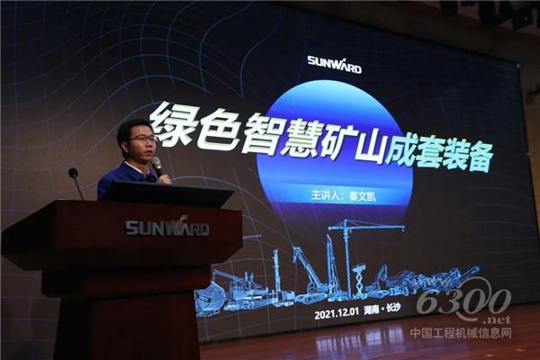 △山河智能挖掘機事業(yè)部研究總院第一研究所所長秦文凱向客戶介紹山河智能綠色智慧礦山成套裝備。