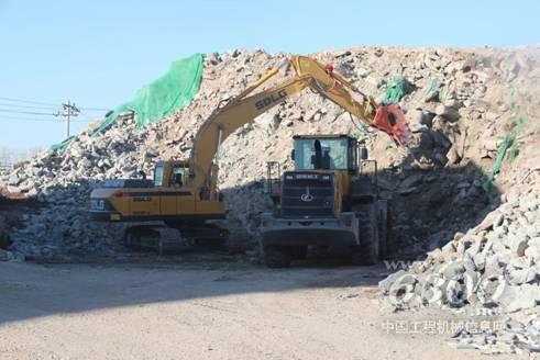 走進(jìn)公司的廠區(qū),一派熱火朝天的工作場景:多臺臨工L955F裝載機(jī)來回穿梭,有的在卸料,有的在過篩;不遠(yuǎn)處,一臺臨工E6210FHD挖掘機(jī)正在破碎建筑垃圾。