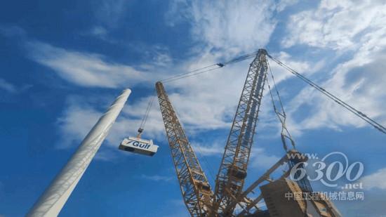 阡陌縱橫,“徐工金”在群山連綿中極其亮眼。XGC12000伸展超起,落下吊鉤,將葉片輕松提起,到達指定位置后,精準落位,整個吊裝過程安全又平穩(wěn)。憑借出色的表現(xiàn),獲得施工方和項目方的一致認可。