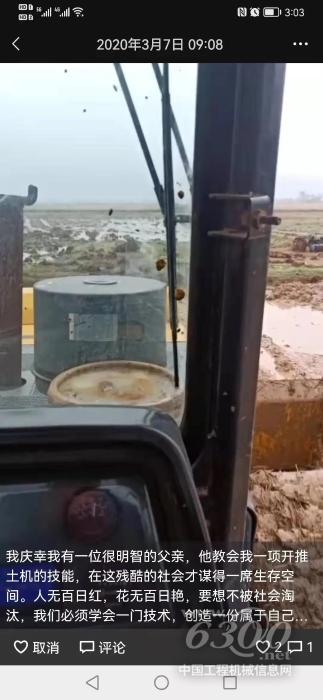 近年來,在兒子的強(qiáng)烈要求下,譚大哥終于“退休”回了家。每每提到父親,譚大哥的兒子總是懷著感恩之心,感恩父親教會了他做人的道理和開推土機(jī)的本領(lǐng),立足社會謀得一席生存之地……就這樣,父子二人把工程越做越大,自家推土機(jī)保有量也逐年增多,日子也越來越紅火。