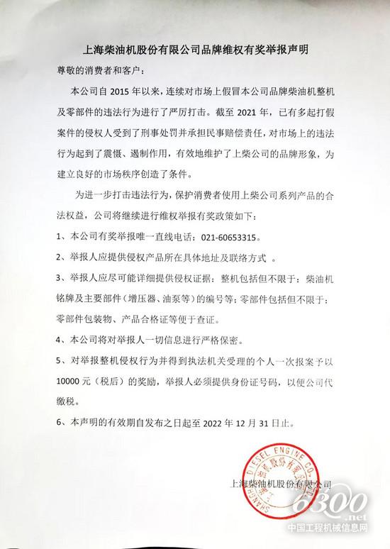 為了更好地維護消費者的合法權(quán)益,上海柴油機股份有限公司堅決嚴厲打擊市場上假冒本公司品牌柴油機整機的侵權(quán)行為,同時,我們推出有獎維權(quán)活動,鼓勵廣大消費者與我們攜手,共同將維權(quán)進行到底。