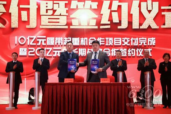 活動現(xiàn)場,雙方再次簽訂20億中長期戰(zhàn)略合作采購協(xié)議,徐工和上海騰發(fā)將在超大噸位履帶起重機(jī)、大型環(huán)軌起重機(jī)、新型吊裝施工工法等方面實(shí)施深度戰(zhàn)略合作,開啟共贏發(fā)展新機(jī)遇。