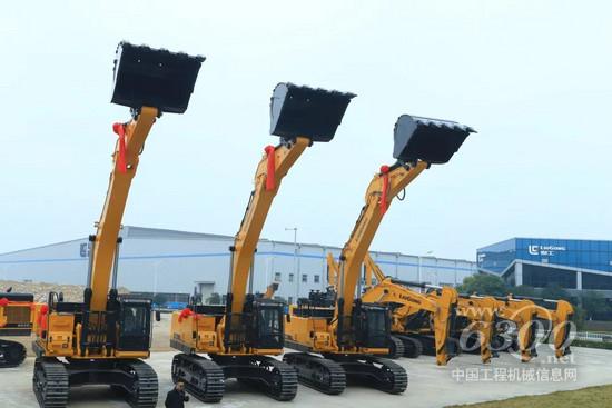 1月3日,柳工挖掘機在柳州國際工業(yè)園隆重舉行15臺CLG965EHD,CLG975EHD大型挖掘機批量發(fā)運儀式?,F(xiàn)場挖掘機身披大紅花、排列整齊,整裝待發(fā)!