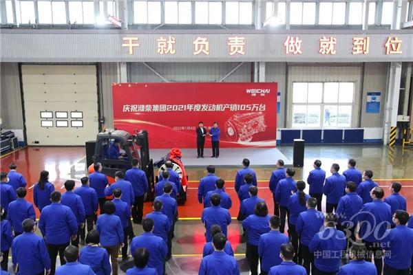 2022年1月4日,元旦假期后上班第一天,濰柴集團在濰坊總部生產(chǎn)車間舉行儀式,慶祝濰柴集團2021年產(chǎn)銷發(fā)動機105萬臺。在員工和客戶代表的見證下,譚旭光將“第105萬臺發(fā)動機”交付給陜重汽。