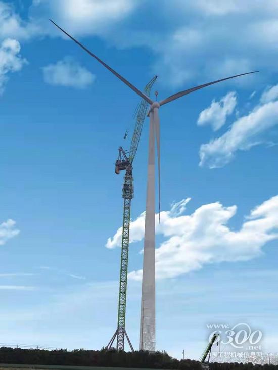 △中聯(lián)重科生產(chǎn)制造的全球最大風(fēng)電動臂塔機正在作業(yè)