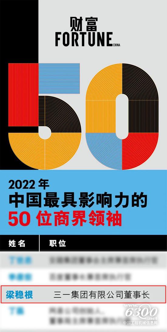 4月8日,財富2022年中國最具影響力的50位商界領(lǐng)袖榜單發(fā)布,三一集團(tuán)董事長梁穩(wěn)根先生獲評。
