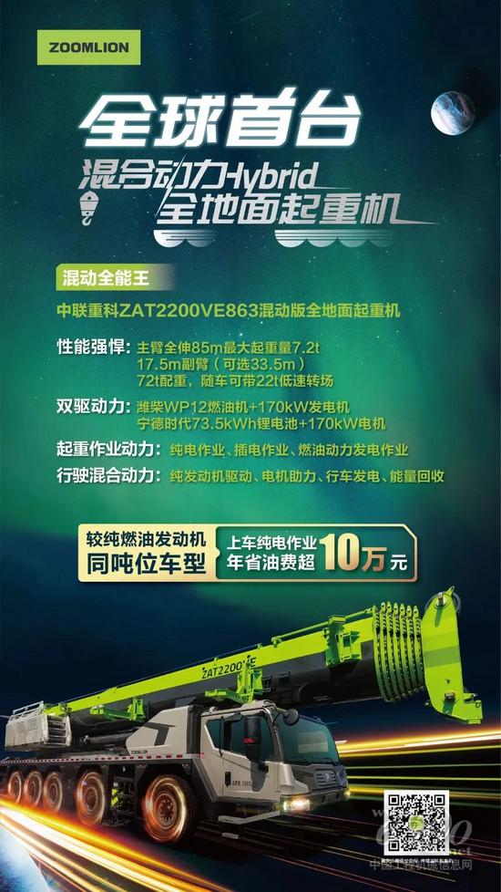 ▲中聯(lián)重科發(fā)布全球首臺混合動力全地面起重機