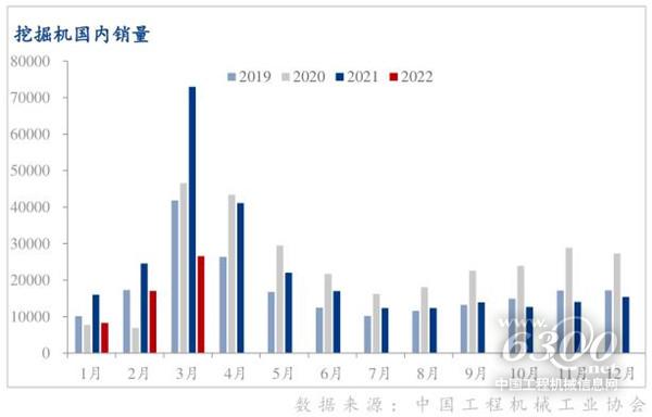受疫情持續(xù)影響、房地產(chǎn)和基建工程開工率低迷等因素影響, 3月份工程機(jī)械的核心代表挖掘機(jī)銷售不達(dá)預(yù)期,相比2月同比降幅持續(xù)擴(kuò)大。