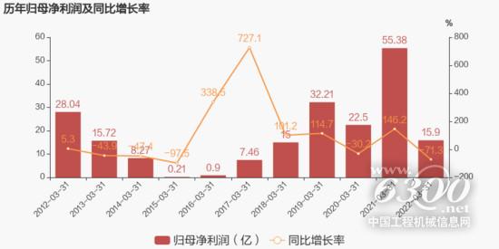 2. 三一重工:2022年一季度營收202.8億,歸母凈利潤15.9億;