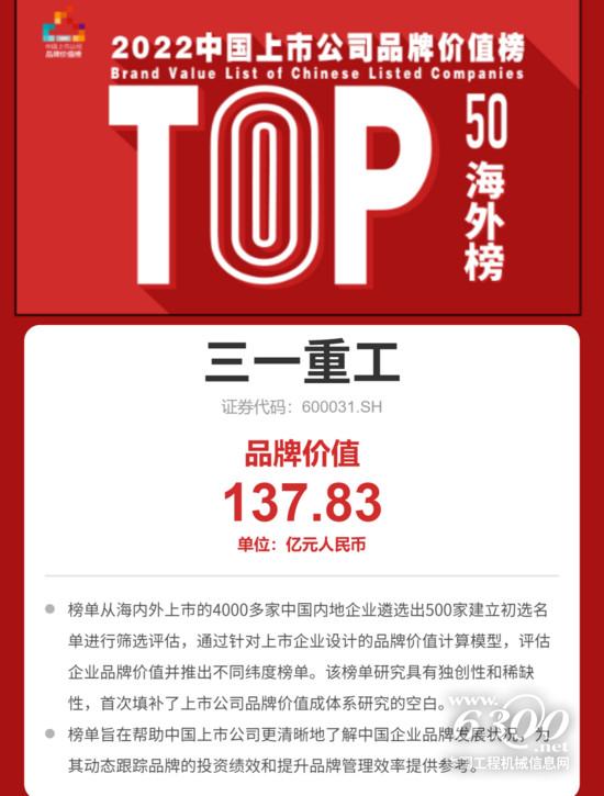 此外,作為2022中國上市公司品牌價(jià)值榜TOP100上榜企業(yè),三一重工同步入選“每經(jīng)品牌100指數(shù)”。