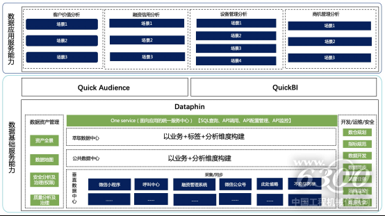 經(jīng)過(guò)充分的調(diào)研后,現(xiàn)代斗山IT團(tuán)隊(duì)和業(yè)務(wù)團(tuán)隊(duì),與瓴羊數(shù)據(jù)中臺(tái)項(xiàng)目組一起完成了涵蓋客戶、商機(jī)、設(shè)備等多層面的問(wèn)題梳理及痛點(diǎn)分析,并借助于瓴羊Dataphin+Quick BI+Quick Audience的產(chǎn)品矩陣,最終形成了滿足于現(xiàn)代斗山數(shù)據(jù)中臺(tái)建設(shè)的“一橫四縱”整體解決方案。