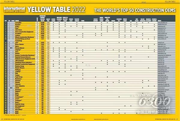 全球工程機械信息提供商英國KHL集團官微6月4日消息,KHL旗下《國際建設(shè)》雜志發(fā)布的最新Yellow Table榜單顯示,2021年全球前50強工程機械主機生產(chǎn)企業(yè)榜單中前10名分別是: