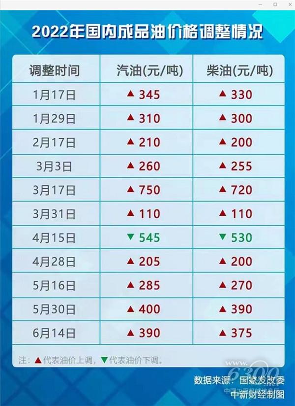 2022年國(guó)內(nèi)成品油價(jià)格調(diào)整情況圖
