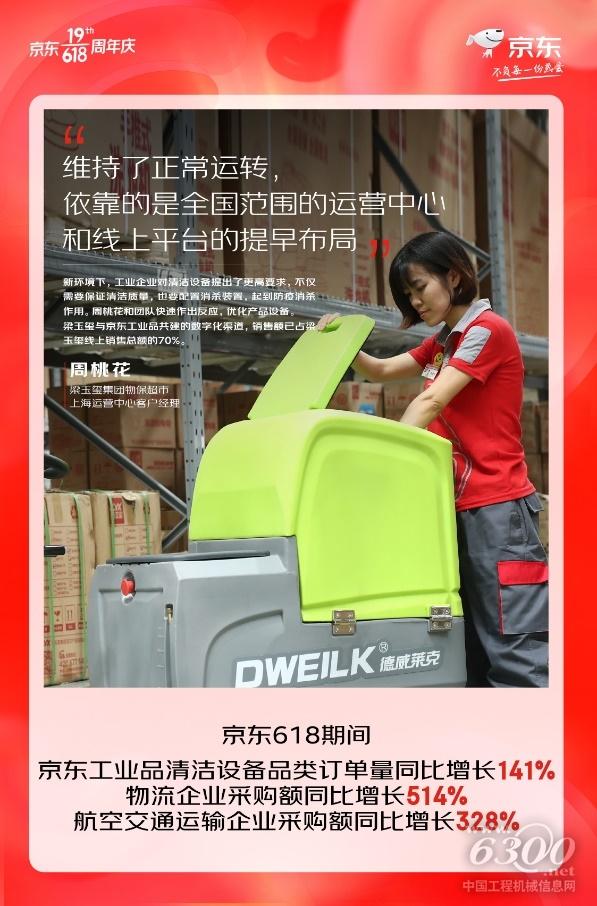 在梁玉璽等清潔設(shè)備品牌的共同努力下,618期間,京東工業(yè)品清潔設(shè)備品類訂單量同比增長141%,其中,物流企業(yè)采購額同比增長514%,航空交通運(yùn)輸企業(yè)采購額同比增長328%。