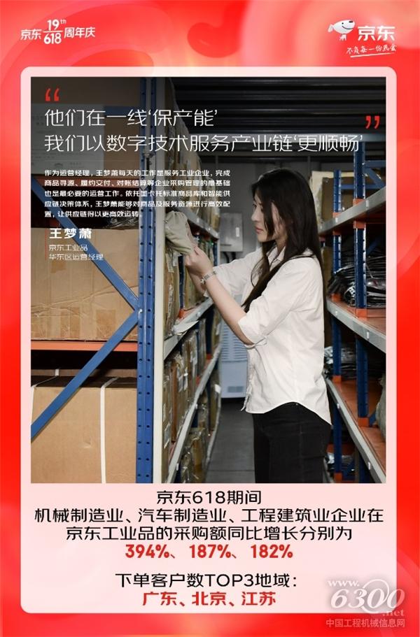 從王銘、廖必鍇、姜蘇等這樣在工廠全力“保產(chǎn)能”的一線工作者,到王夢(mèng)蕭這樣服務(wù)產(chǎn)業(yè)鏈“更順暢”的幕后人員,正是這些人的日夜不分、全力以赴,鑄就了工業(yè)產(chǎn)業(yè)的強(qiáng)大韌性。在京東618期間,這些韌性也顯明地反映到工業(yè)企業(yè)經(jīng)營的各項(xiàng)指標(biāo)上。京東618期間,機(jī)械制造業(yè)、汽車制造業(yè)、工程建筑業(yè)企業(yè)在京東工業(yè)品的采購額同比增長分別為394%、187%、182%,廣東、北京、江蘇位居下單客戶數(shù)TOP3地域。