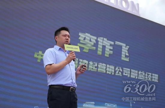 ▲中聯(lián)重科建筑起重機械營銷公司副總經(jīng)理李作飛介紹服務(wù)內(nèi)容