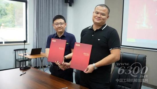 中聯(lián)重科站類事業(yè)部副總經(jīng)理吳德志與湖南立忠蓮花公司董事長(zhǎng)陳春現(xiàn)場(chǎng)簽約