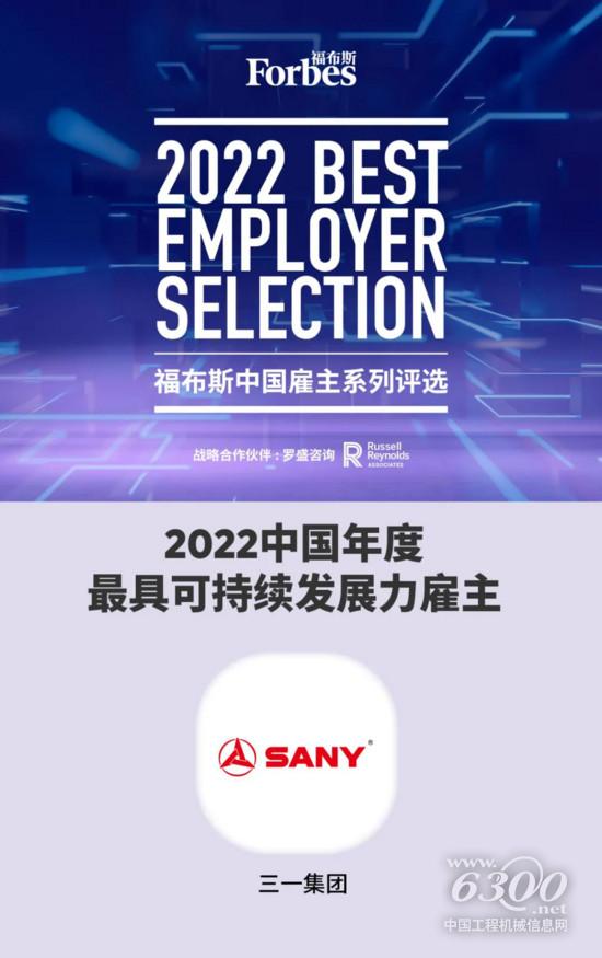 7月8日,福布斯中國聯(lián)合全球領導力咨詢公司——羅盛咨詢公司正式發(fā)布2022福布斯中國?最佳雇主系列評選結果,三一集團榮獲“2022中國年度最具可持續(xù)發(fā)展力雇主”稱號,是榜單中唯一的裝備制造企業(yè)。