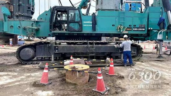“該項目施工樁徑為0.8-1m,孔深46-47m,主要以粘土、泥巖為主,對于這臺‘全球最高樁架’來說可輕松拿下?!爆F(xiàn)場技術(shù)人員信心十足地談到,它的施工優(yōu)勢主要在于立柱高度高,即使是搭載更長的鉆具及更重的工作裝置,也不會影響到樁架的穩(wěn)定;在成孔深度需求較深及鉆孔直徑較大的工況下,可一次性成孔(不用接鉆桿或采用伸縮鉆桿),大幅提高施工效率。