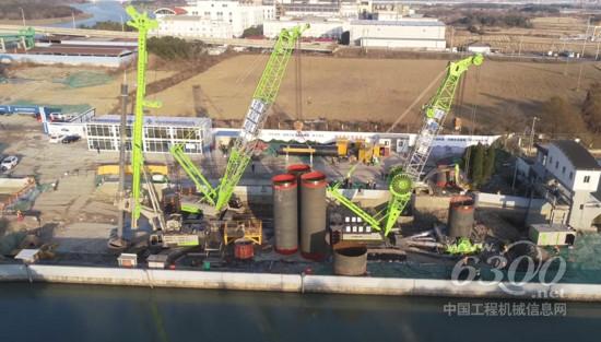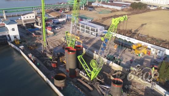 ▲中聯(lián)重科全球最大直徑全套管鉆機及配套設備正在施工