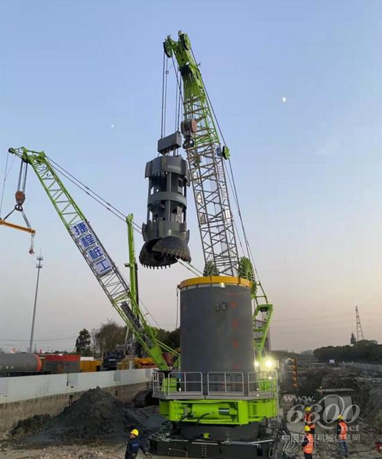 ▲中聯(lián)重科全球最大直徑全套管鉆機及成套設備正在施工