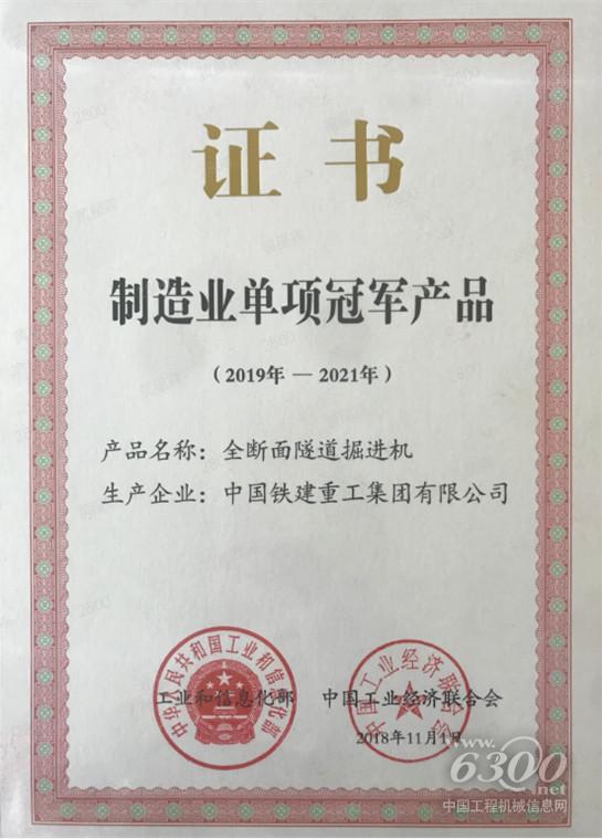 近日,國家工信部、中國工業(yè)經(jīng)濟(jì)聯(lián)合會(huì)頒發(fā)了第三屆制造業(yè)單項(xiàng)冠軍產(chǎn)品復(fù)核通過的新證書。作為2019-2021年的單項(xiàng)冠軍產(chǎn)品,鐵建重工全斷面隧道掘進(jìn)機(jī)經(jīng)過行業(yè)和市場的三年考驗(yàn),成功獲批繼續(xù)保持這一行業(yè)冠軍殊榮。這也代表著鐵建重工在全斷面隧道掘進(jìn)機(jī)這一細(xì)分產(chǎn)品領(lǐng)域持續(xù)穩(wěn)居市場和技術(shù)全球前列,彰顯“中國制造”排頭兵的強(qiáng)勁實(shí)力。